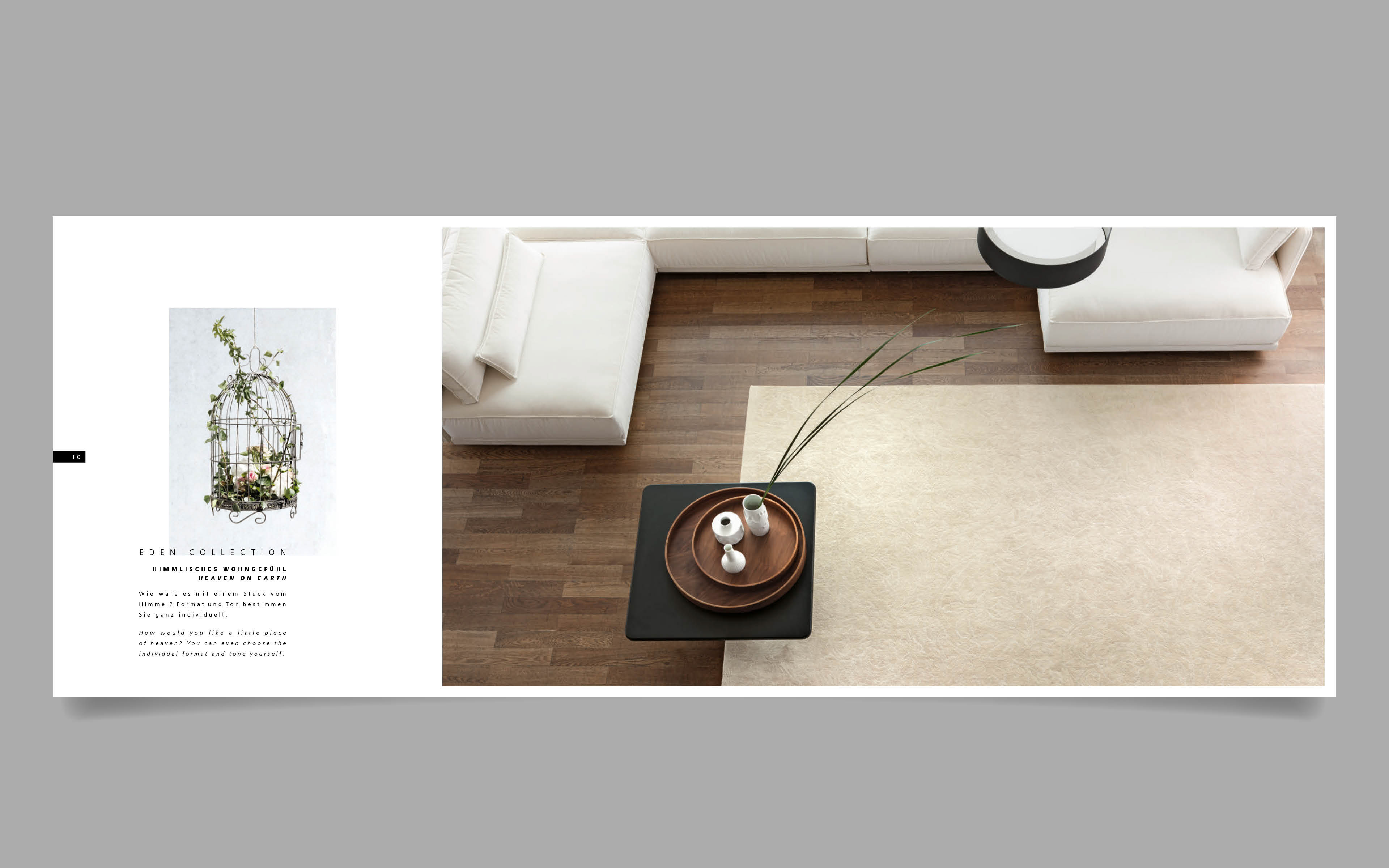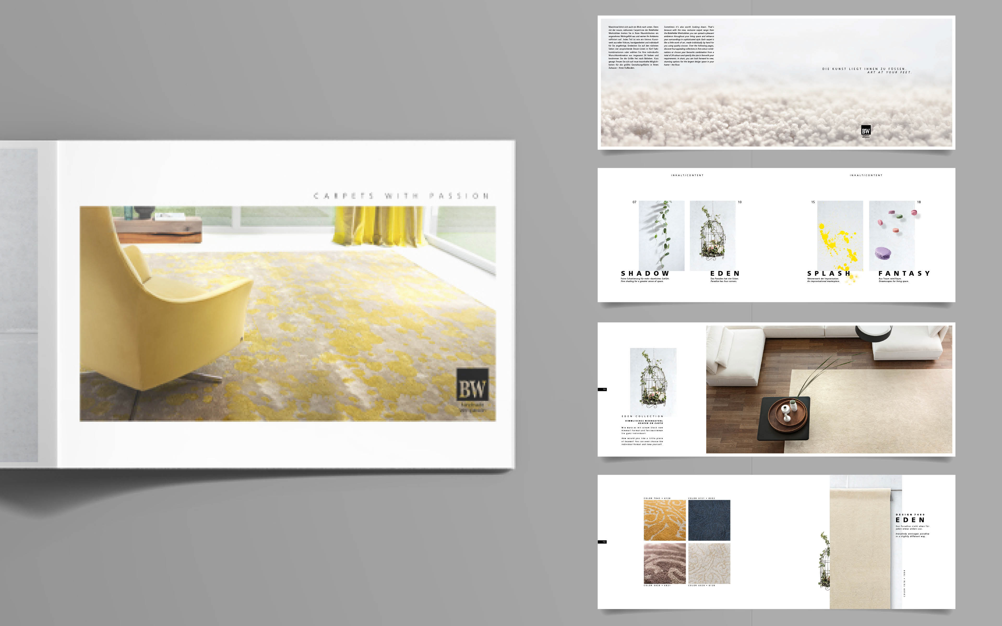 Editorial-Design für eine Teppichkollektion der Bielefelder Werkstätten.